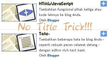 UPDATE: Sekarang Judul Gadget HTML/Java Script serta Text sudah Bisa Dikosongkan. Dengan kata lain sudah tidak perlu menggunakan trik ini lagi (sudah kembali normal).